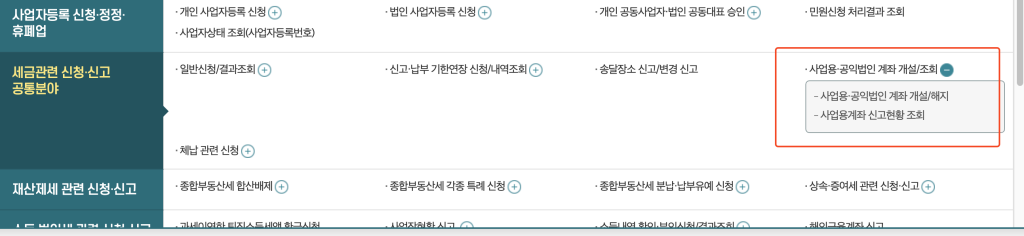 홈택스를 통한 사업용 계좌 등록 방법