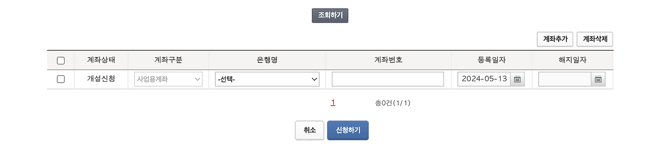 - '사업용 공익법인 계좌개설/해지'를 선택하고, 필요한 정보를 입력하여 사업자 계좌를 추가 등록합니다.