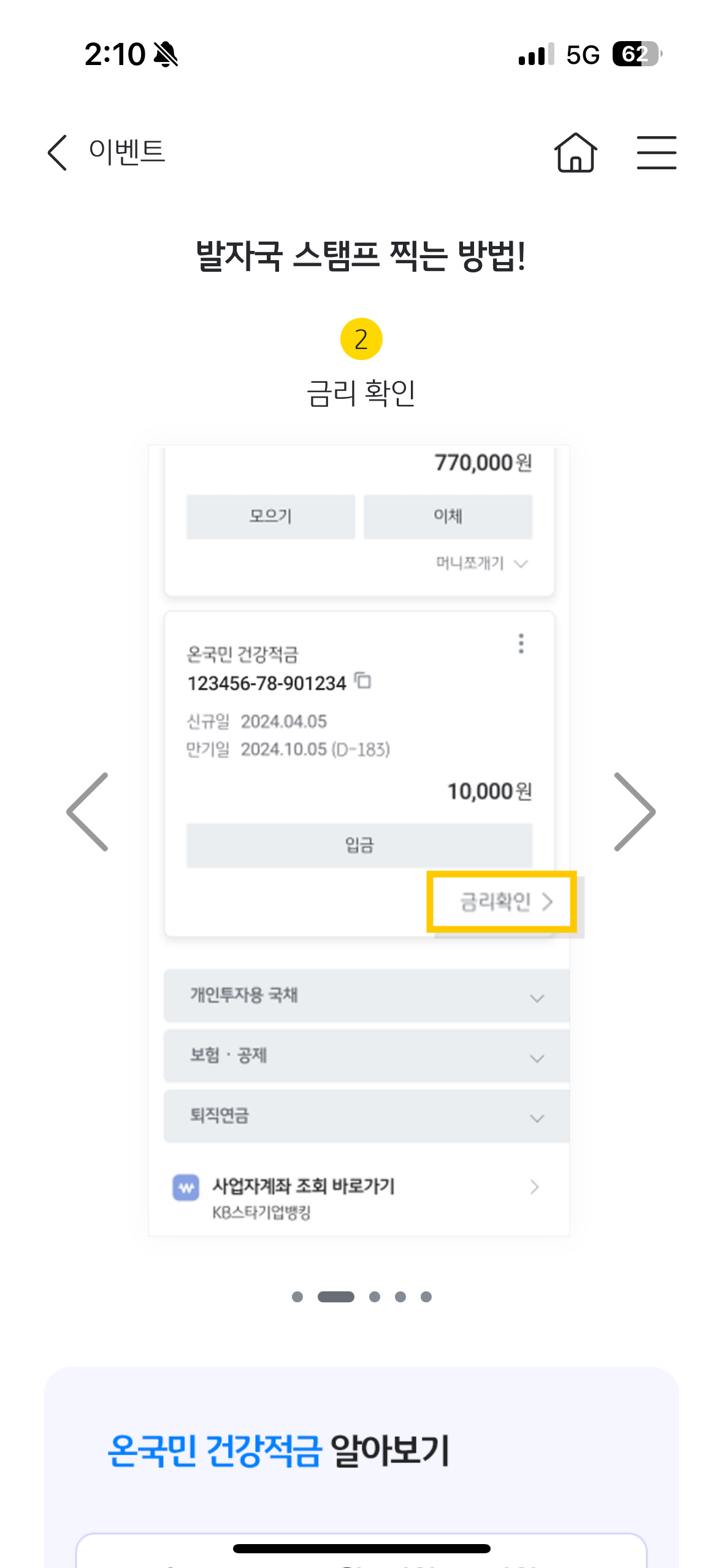 - 이벤트 기간 중 KB스타뱅킹 [금리확인] 화면에서 ‘발자국 스탬프 찍기’를 1회 이상 달성합니다.